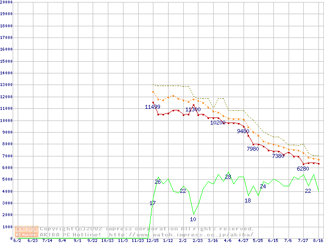 Socket A (Morgan,PGA,FSB 200MHz,L2 64KB)の最安値推移