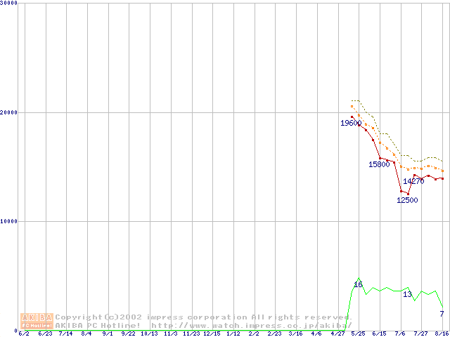 Deskstar 120GXP (7200rpm,UltraATA/100 2MB)の最安値推移