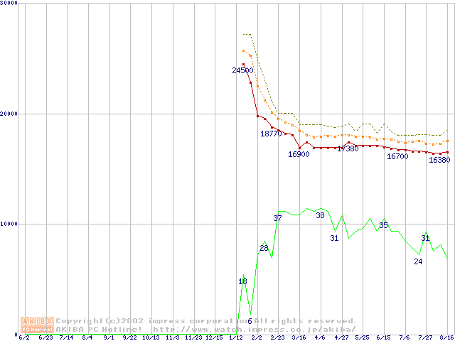 Pentium 4 1.60A GHz リテールパッケージの価格推移