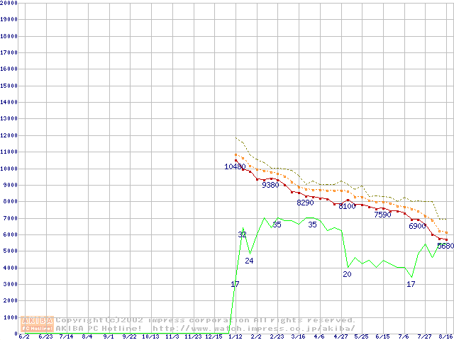 Celeron 1A GHz FC-PGA2 リテールパッケージの価格推移