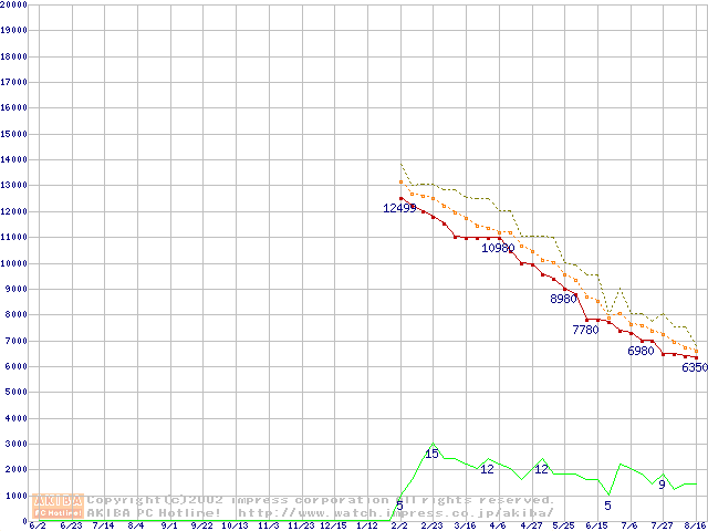 Socket A (Morgan,PGA,FSB 200MHz,L2 64KB)の最安値推移