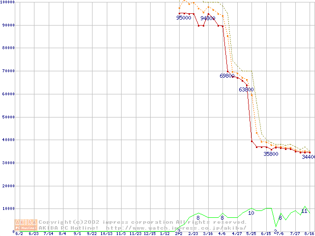 Socket 603 (micro-PGA,L2 512KB,Hyper-Threading,Prestonia)の最安値推移