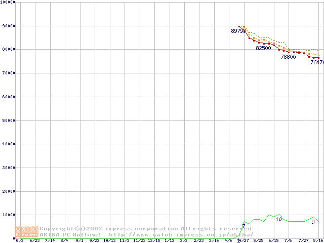 Socket 603 (micro-PGA,L2 512KB,Hyper-Threading,Prestonia)の最安値推移
