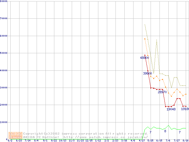 PC3200(DDR400) DDR SDRAM DIMMの最安値推移