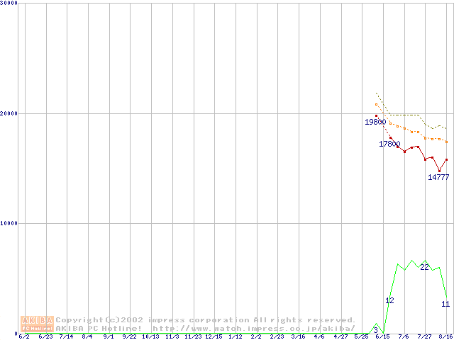 メモリ主要製品(最安値1万円以上)の最安値推移
