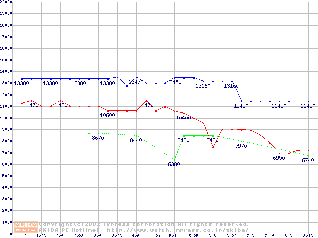 | [↑前グラフ]: | Socket A (Thunderbird,PGA,FSB 266MHz,L2 256KB)の最安値推移 |