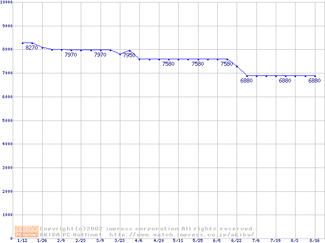| [↓次グラフ]: | Deskstar 120GXP (7200rpm,UltraATA/100 2MB)の最安値推移 |