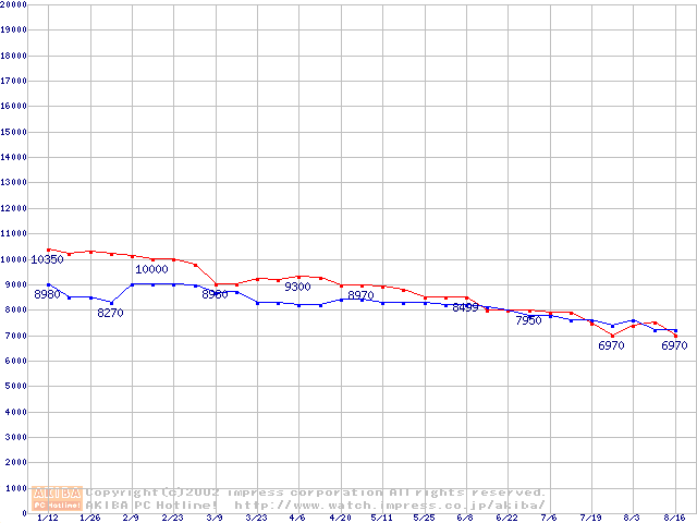 | [↑前グラフ]: | WD Caviar (5400rpm,UltraATA/100)の最安値推移 |