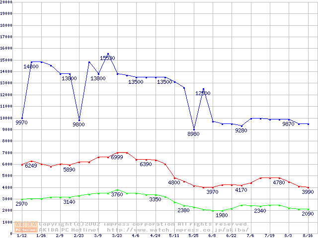 | [↓次グラフ]: | PC800-45 DRDRAM RIMMの最安値推移 |