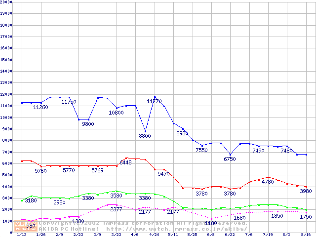 | [↓次グラフ]: | PC133 SDRAM DIMM CasLatency=2の最安値推移 |