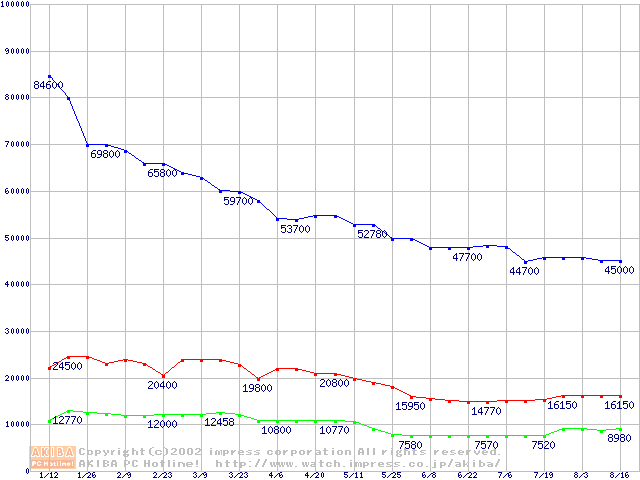 | [↑前グラフ]: | PC3200(DDR400) DDR SDRAM DIMMの最安値推移 |