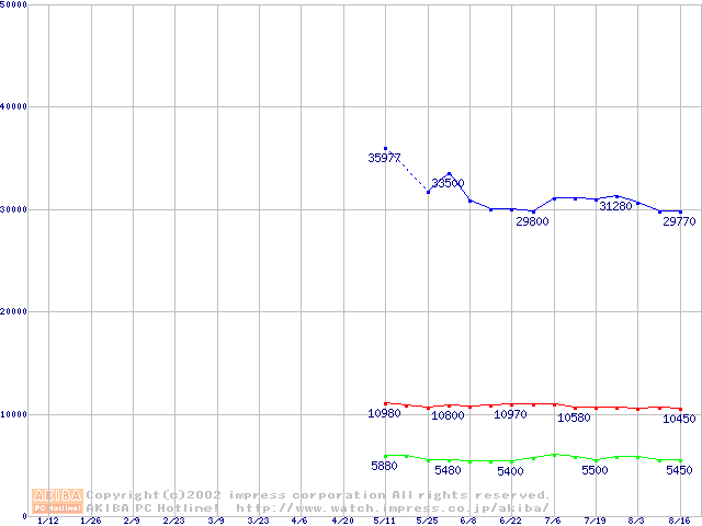 | [↑前グラフ]: | PC800-45 DRDRAM RIMMの最安値推移 |