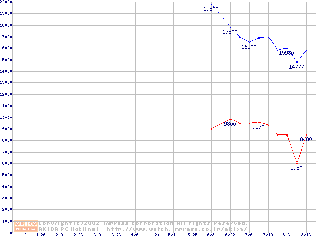 | [↓次グラフ]: | PC1066 DRDRAM RIMM4200(32bit)の最安値推移 |