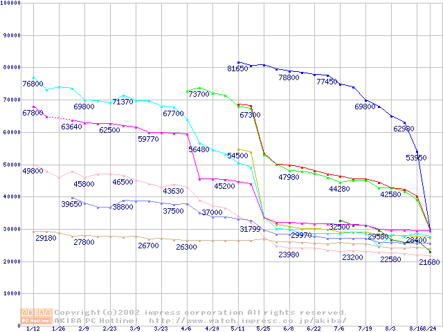 CPU主要製品(最安値2万円~3万円未満)の最安値推移