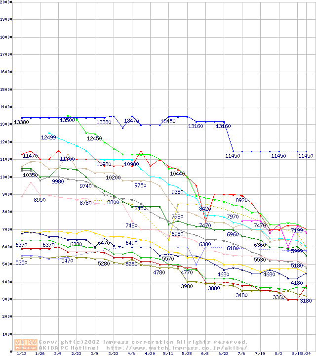 Socket A・FSB 200MHzの最安値推移