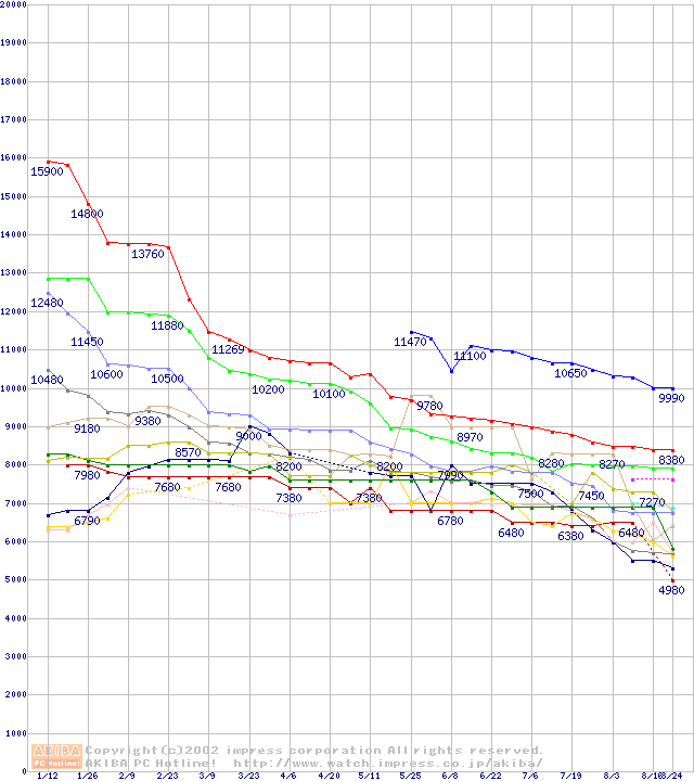 Socket 370・FSB 133MHzの最安値推移