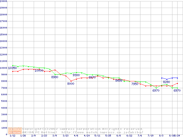| [↑前グラフ]: | HDD 30GB~40GB未満(5400rpmクラス)の最安値推移 |