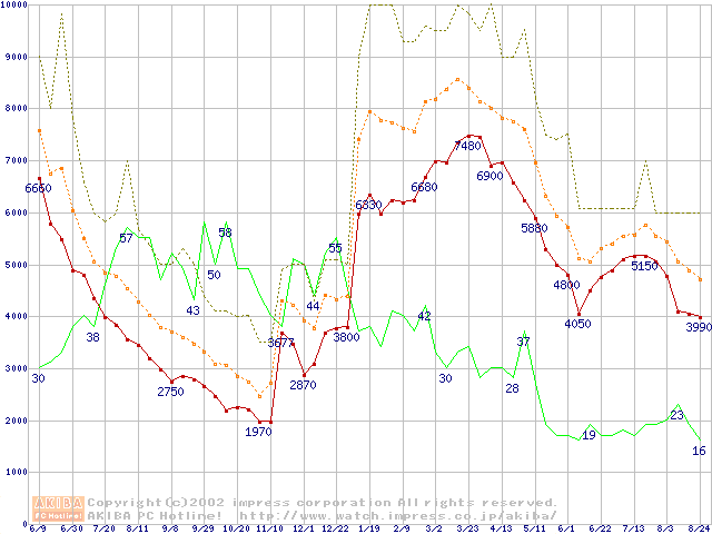 PC133 SDRAM DIMM CasLatency=2の最安値推移