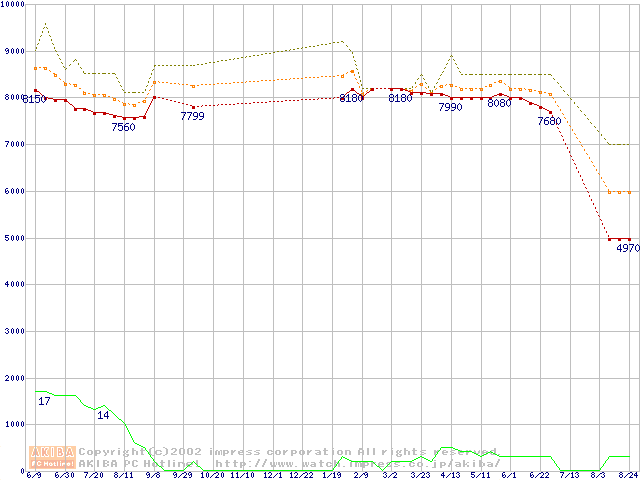 U5 (5400rpm,UltraATA/100 512KB)の最安値推移