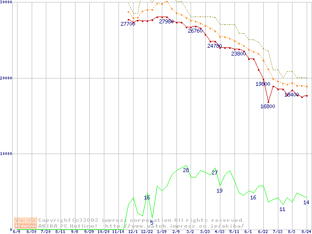 WD Caviar(Special Edition) (7200rpm,UltraATA/100,8MB)の最安値推移