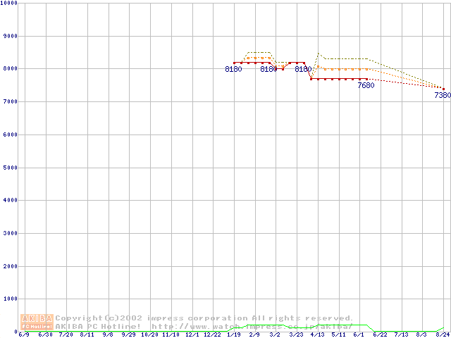Socket 370 (PGA,FSB 133MHz,L2 64KB)の最安値推移