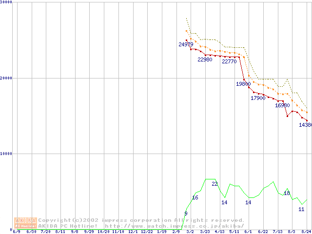 Athlon MP 1600+ (1.4GHz) リテールパッケージの価格推移