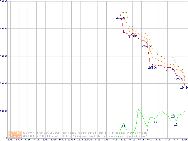 Athlon MP 2000+ (1.67GHz) リテールパッケージの価格推移