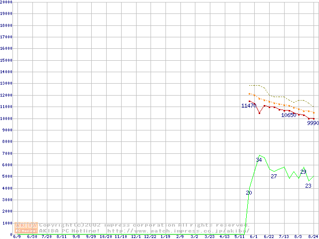 Celeron 1.40GHz FC-PGA2 リテールパッケージの価格推移