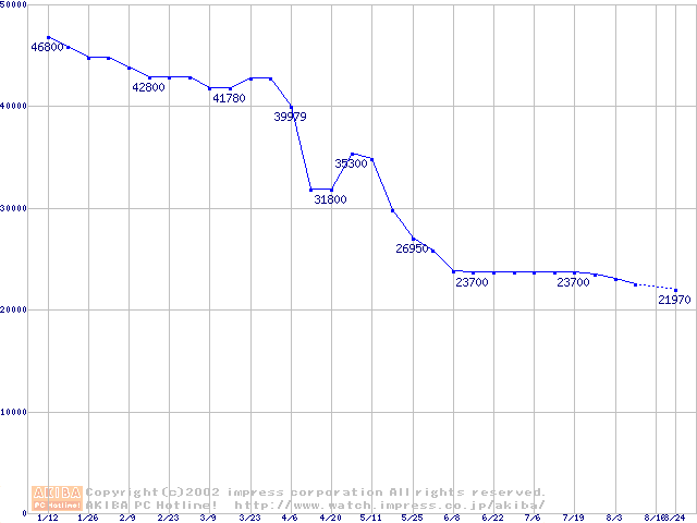 | Socket 478 (micro-PGA,FSB 400MHz,L2 256KB,Willamette)の最安値推移 |