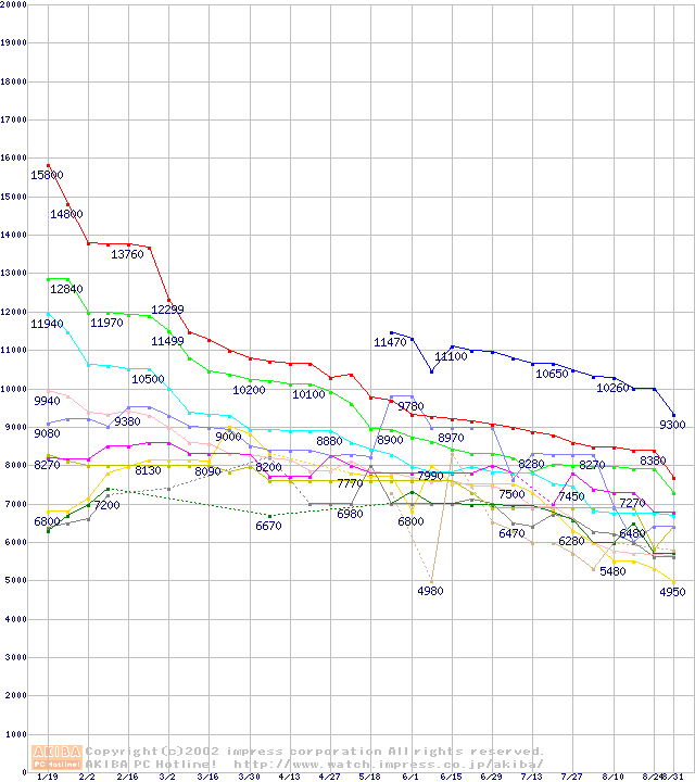 Slot 1・FSB 100MHzの最安値推移