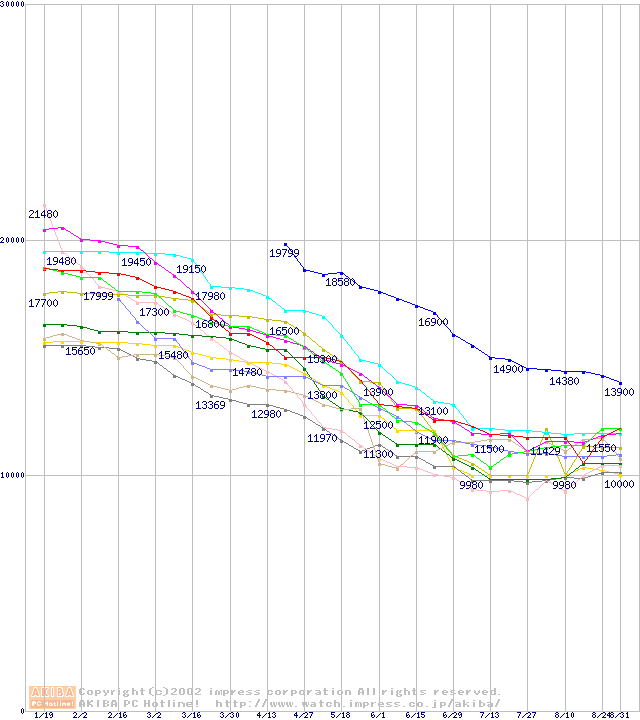 HDD主要製品(最安値1万5千円~2万円未満)の最安値推移