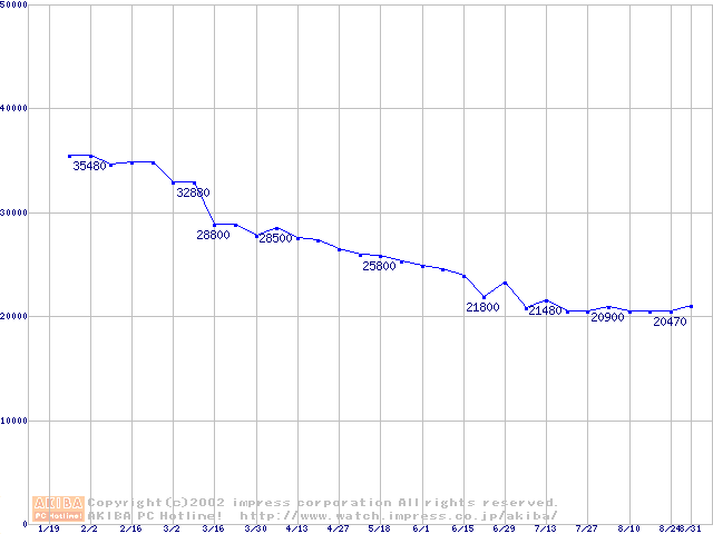 HDD主要製品(最安値1万5千円~2万円未満)の最安値推移