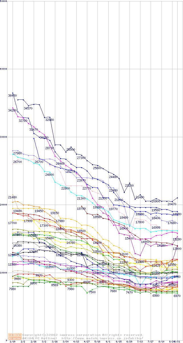HDD 20GB~30GB未満(5400rpmクラス)の最安値推移
