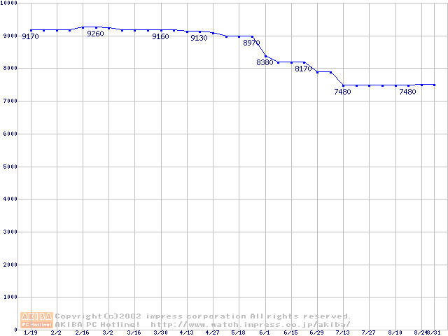 | [↓次グラフ]: | HDD 40GB~50GB未満(7200rpmクラス)の最安値推移 |