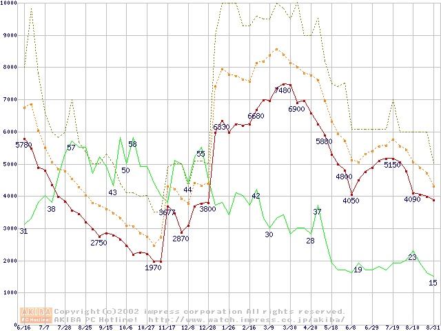 PC133 SDRAM DIMM CasLatency=2の最安値推移