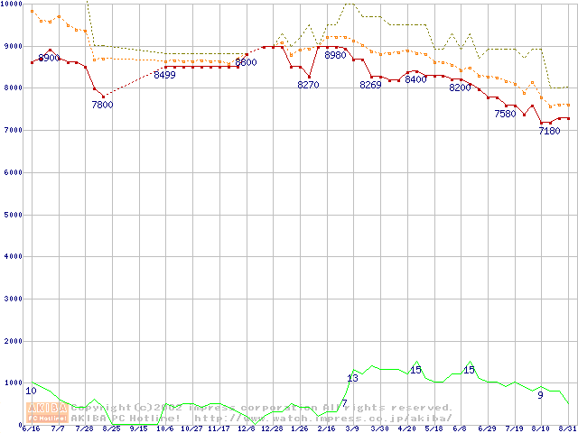 WD Protege (5400rpm,UltraATA/100)の最安値推移