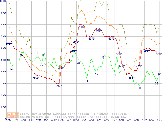 メモリ主要製品の最安値推移