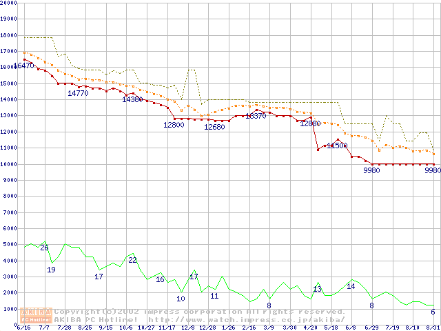 WD Caviar (5400rpm,UltraATA/100)の最安値推移