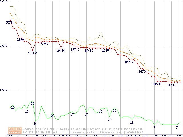 WD Caviar (7200rpm,UltraATA/100,2MB)の最安値推移