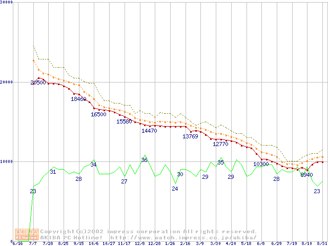 Barracuda ATA IV (7200rpm,UltraATA/100,2MB,40GB/Platter,流体軸受)の最安値推移