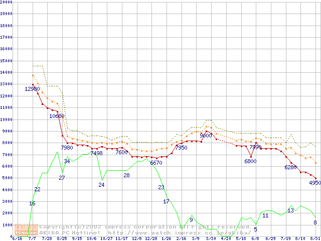 Celeron 900MHz FC-PGA リテールパッケージの価格推移