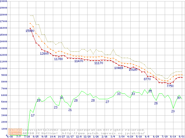 Barracuda ATA IV (7200rpm,UltraATA/100,2MB,40GB/Platter,流体軸受)の最安値推移