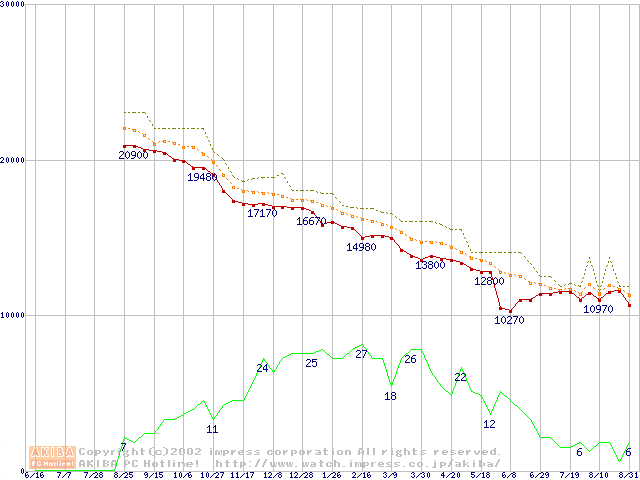 DiamondMax D540X (5400rpm,UltraATA/100,40GB/Platter)の最安値推移