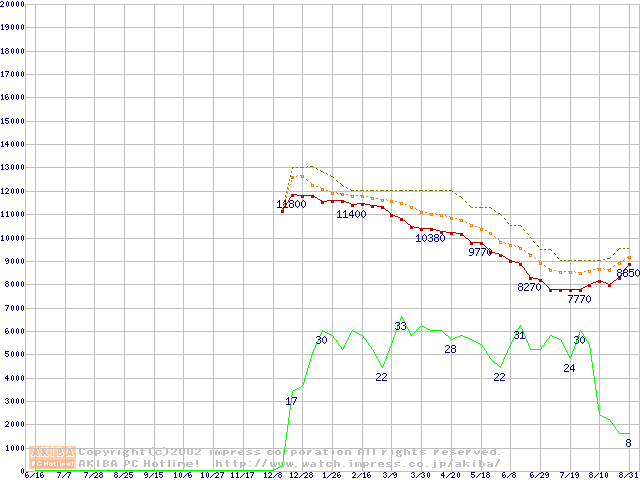 DiamondMax Plus D740X (7200rpm,UltraATA/133,40GB/Platter,流体軸受)の最安値推移