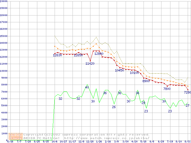 Celeron 1.20GHz FC-PGA2 リテールパッケージの価格推移