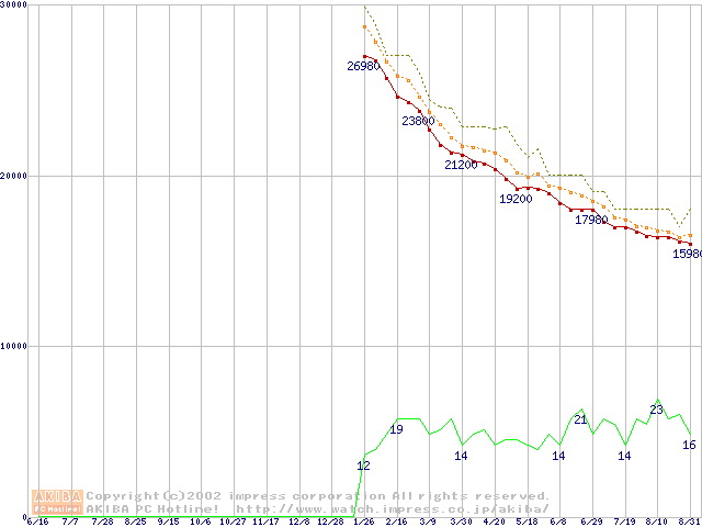 2.5インチHDD主要製品の最安値推移