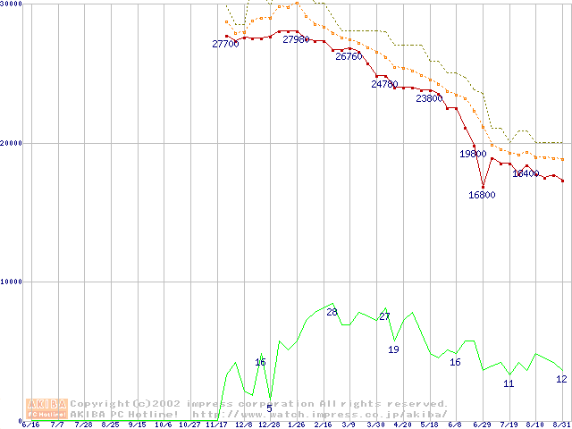 WD Caviar(Special Edition) (7200rpm,UltraATA/100,8MB)の最安値推移