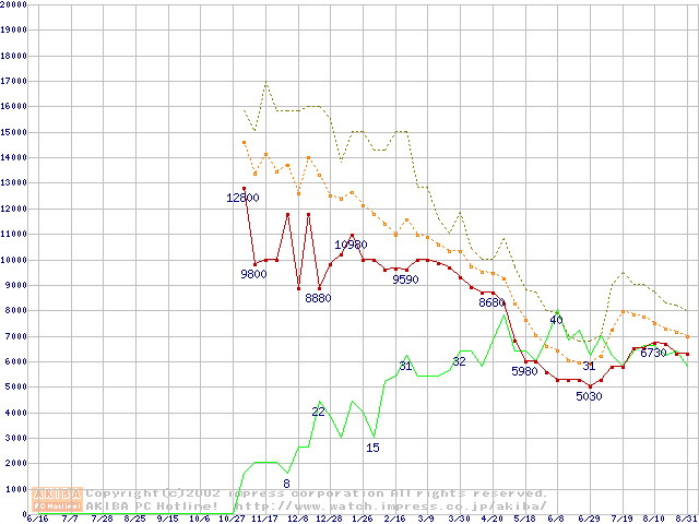 メモリ主要製品の最安値推移