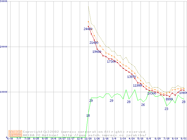 Deskstar 120GXP (7200rpm,UltraATA/100 2MB)の最安値推移
