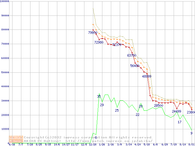 Pentium 4 2.20GHz リテールパッケージの価格推移